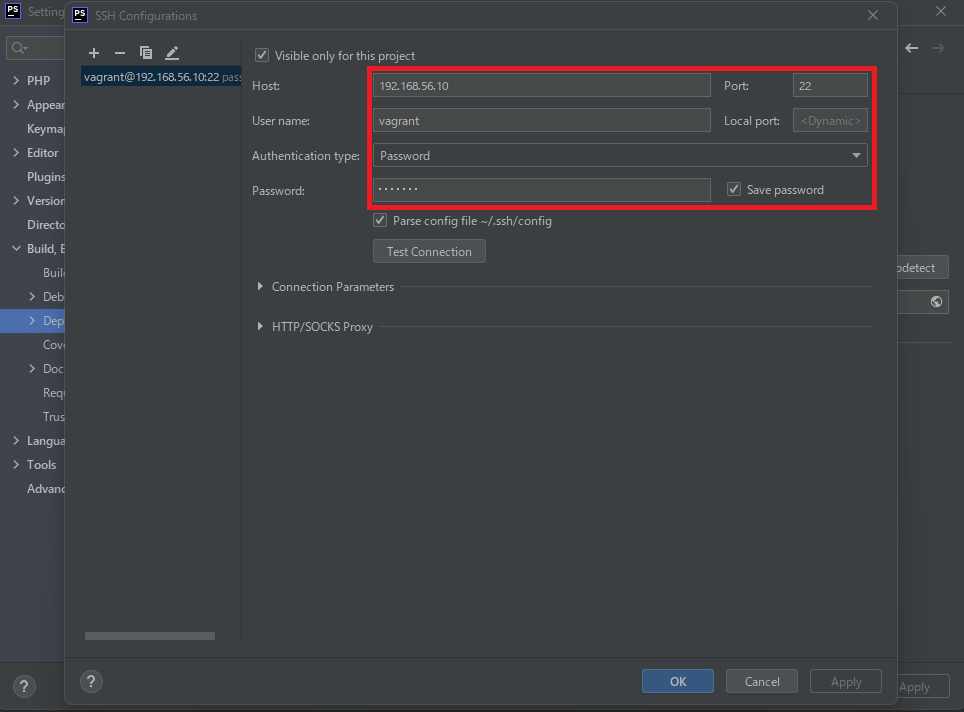 - 「Test Connection」ボタンを押し、接続確認しておきます