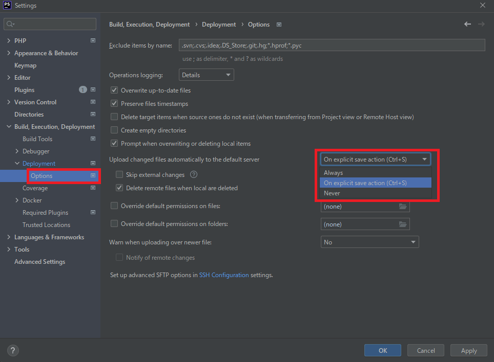 - 11. 「Upload...」の値を、以下のいずれかに設定します